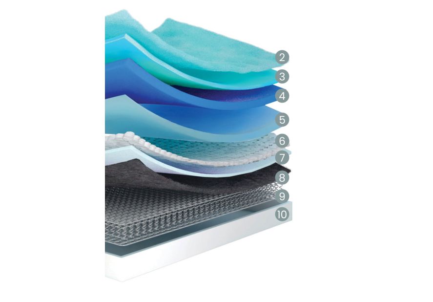 Durabilidade. O Sistema antibacteriano Total Protect atua contra fungos, ácaros e bactérias, para além de prolongar a vida útil do colchão. O Eternity Multi conta com HR de alta densidade para reforçar o bloco exterior. A camada de material têxtil integrada no tecido de feltro contribui para um reforço adicional e assegura uma superfície estável e confortável.